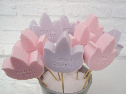 Voeg een speels tintje toe aan jouw assortiment met onze figuurzeepjes met naam. Perfect als origineel bedankje voor speciale gelegenheden zoals geboortes, communies, verlovingen, huwelijken en huwelijksverjaardagen. Onze toppers momenteel zijn: zeep wolkjes met naam voor geboorte, zeep boterbloemen en zeep autootjes met naam voor communie, hartjes met namen voor verloving, huwelijk en huwelijksverjaardag.