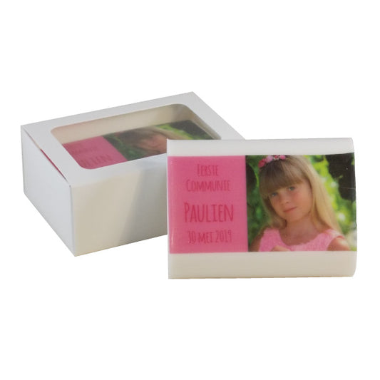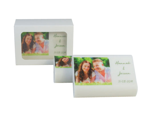 Breid jouw assortiment uit met onze zeep met foto, een uniek en persoonlijk geschenk dat geschikt is voor elke gelegenheid. Onze afgeronde zeep in kleur jasmijn kan gepersonaliseerd worden met een foto en tekst, waardoor het een geweldig idee is als bedankje voor communie, babyborrel, huwelijk, verjaardag, pensioen, jubileum en meer.
